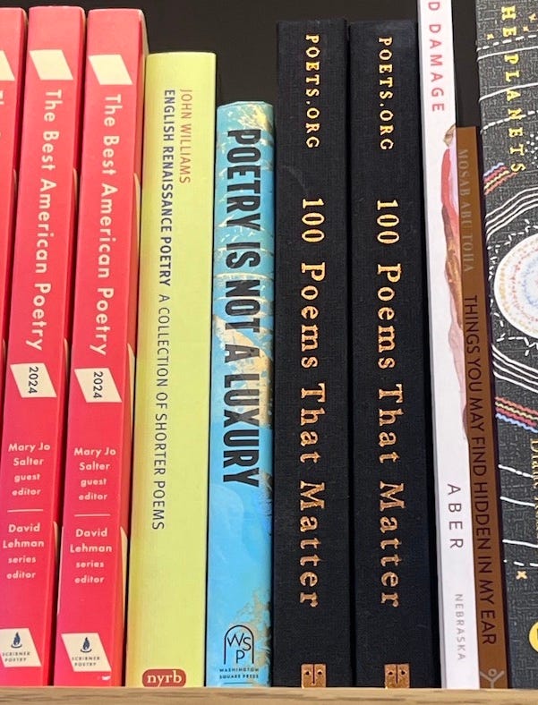 Still, last month I traveled 1000 miles for a long weekend, primarily for the pleasure of walking into bookstores and finding books that felt worth finding. I was craving the opportunity for real discovery through writing, distilling experiences that could pierce the usual defense mechanisms with which we navigate life. Poetry, with its very different modes of conveying.